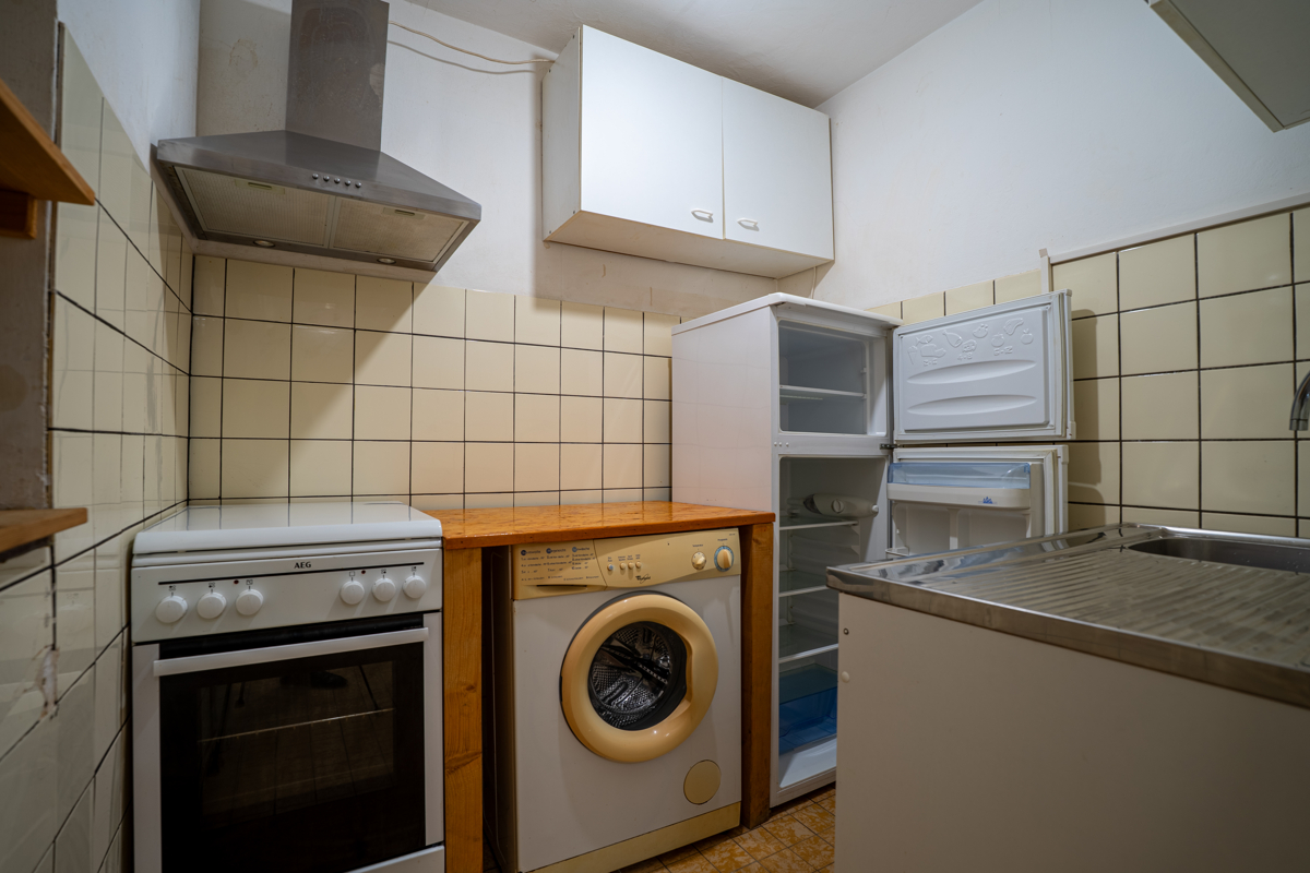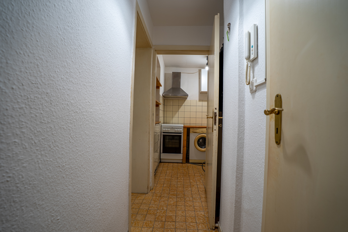 Diese 1-Zimmer-Wohnung im Erdgeschoss überzeugt durch ihren schlichten Charme und eignet sich ideal für Einzelpersonen. Die Küche ist separat vom Wohn-/Schlafbereich gelegen und bereits mit einer Waschmaschine ausgestattet.