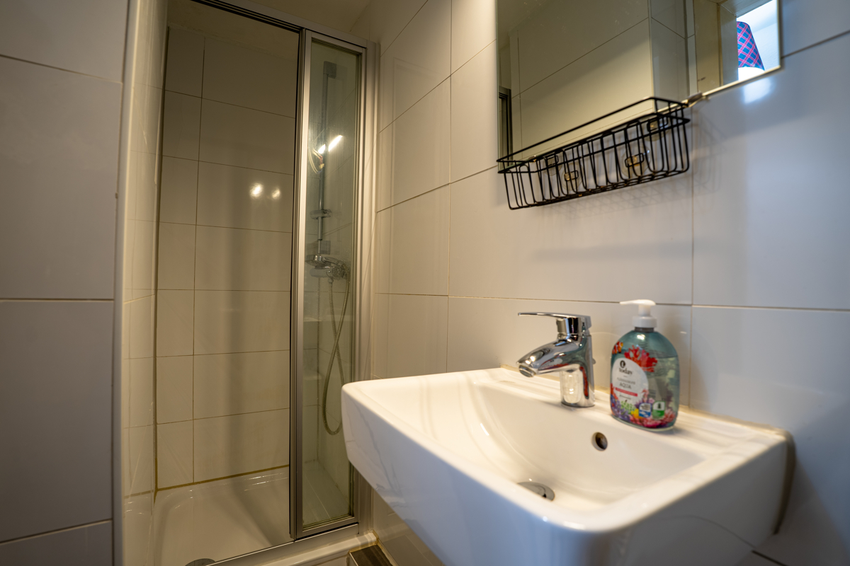 Der Wohn-/Schlafraum verfügt über eine praktische Ankleidenische bzw. einen Stauraumbereich, der zusätzlichen Platz bietet. Das modernisierte Badezimmer ist mit einem beheizten Handtuchhalter ausgestattet.